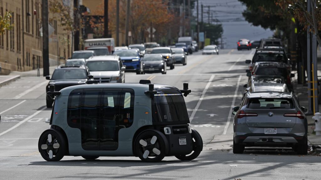 En Zoox robotaxi er set kørende den 19. november 2025 i San Francisco, Californien.